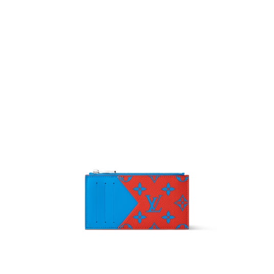 マイアミのアール・デコ地区から着想を得た色合いが特徴のモノグラム・グロウ キャンバスで仕上げた「コイン・カードケース」。このカラーコンビネーションが、メゾンならではのディテールである1番外側のカードスロットの「V」シェイプを引き立てます。4つのカードスロットに加え、コイン用のファスナー式ポケットと紙幣や領収書を収納できるフラットコンパートメントを配しました。