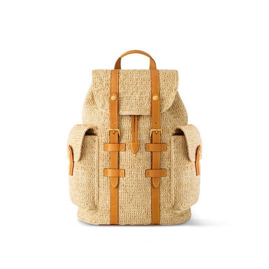 メゾンの巧みな加工技術で仕上げた「クリストファー PM」。繊細なファイバーで特徴あるバッグ「クリストファー」の複雑なデザインを成形しました。2つのサイドポケットとヌメ革のトリミングなどをあしらったラフィアの構造により夏らしい印象に。