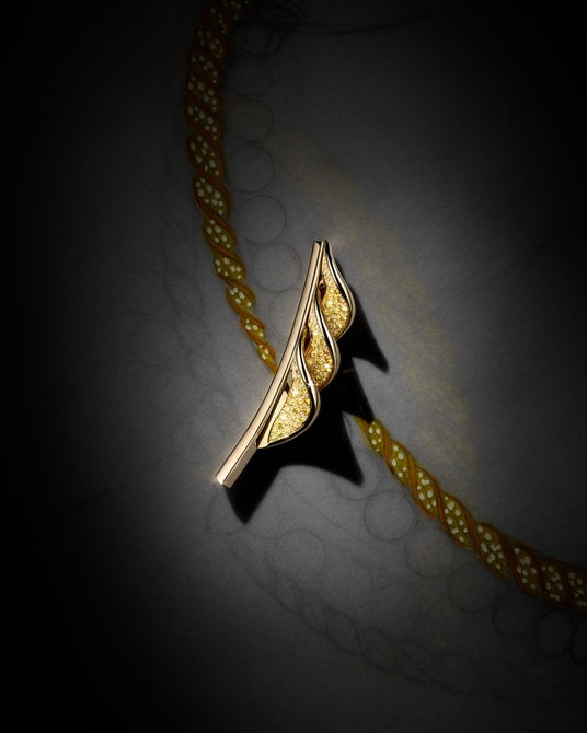 「Savoir」ではじまる旅には、神秘的で深遠なムード、そしてグラフィカルな力強さがあります。その中心で脈打つのは、トライアングル・モチーフ。メゾンが長年愛し続けてきたこのシンボルは、古代から伝わる知識の象徴としてのトライアングルへのオマージュでもあります。