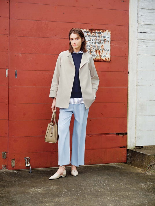 キャリアブランド市場の中でスタイリッシュなテイストで、シャープな着こなしを求める働く女性に支持され続けています。