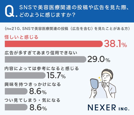 ■38.1%がSNSの美容医療関連の投稿を「怪しいと感じる」と回答
