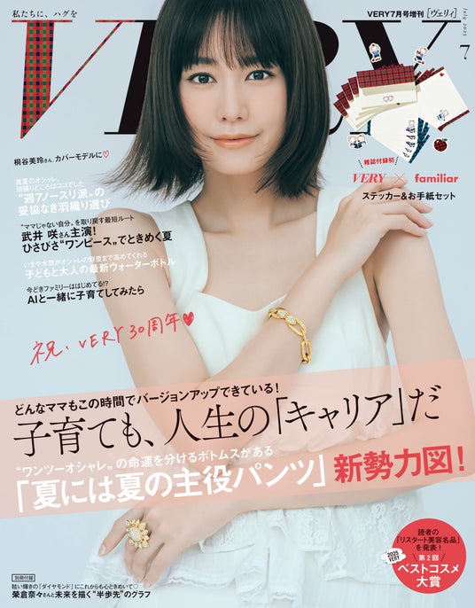 創刊30周年記念号となる『VERY』7月号は、ベスコス以外にも注目トピックスが盛りだくさん!増刊には、特別付録として今年創業75周年を迎えた『familiar』さんとコラボしたステッカー&お手紙セットが!予約段階から完売続出で、発売前から大反響です!