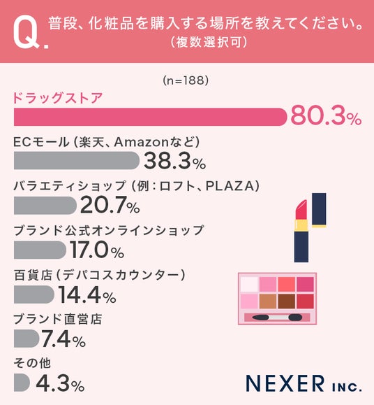 ■80.3%が、普段化粧品を購入する場所は「ドラッグストア」と回答
