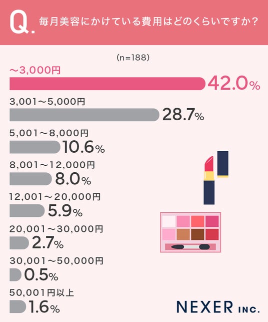■42%が、毎月美容にかけている費用は「3,000円以下」と回答