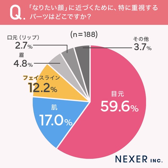 ■59.6%が「なりたい顔」に近づくために重視するパーツは「目元」