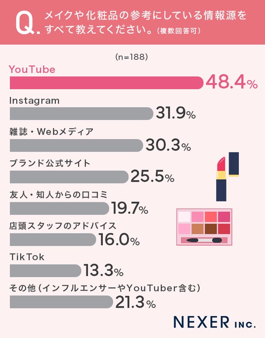 ■48.4%が、メイクや化粧品の参考にしている情報源は「YouTube」と回答