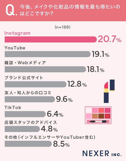 ■20.7%が今後、メイクや化粧品の情報を最も得たいのは「Instagram」と回答