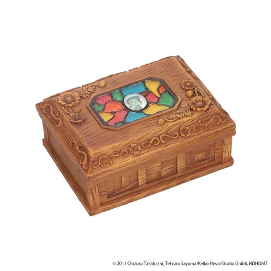 作中に登場する古い洋館「カルチェラタン」をイメージした、2011年発売の小物入れをリニューアルいたしました。箱の内部に刻まれた年輪と古びた質感が「カルチェラタン」を想起させるデザインで、木彫り風のお花や応答旗、ステンドグラス風の装飾など作品に関連したモチーフをあしらいました。クッションを入れてジュエリーボックスとして活用したり、時計やイヤホンなど小ぶりなものを収納したりと、自分だけの「宝箱」として使ってほしいアイテムです。