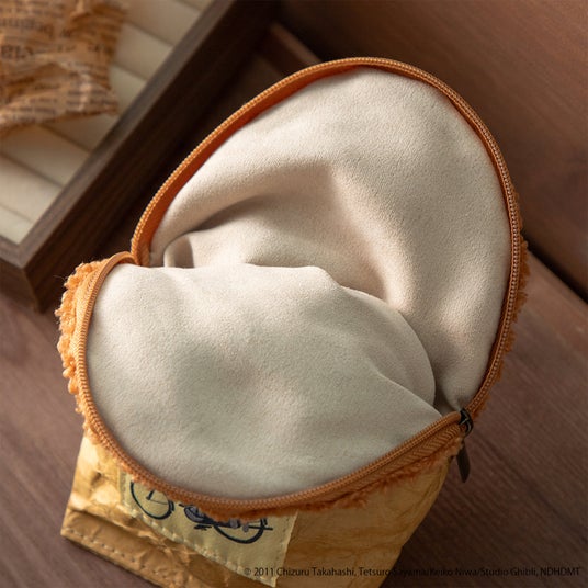 『コクリコ坂から』作中に登場するコロッケをモチーフにしたポーチです。コロッケの衣はパイル生地の起毛を、包み紙の部分は紙素材を使用し、コロッケをリアルに表現しています。織りネームには自転車で坂を下る海と俊のワンシーンやお肉屋さんの店頭に表記されていた値札のデザインを採用するなど、思わず作品を観返したくなるようなこだわりを感じられるアイテムに仕上げました。