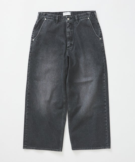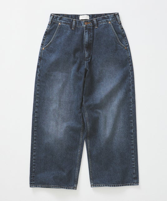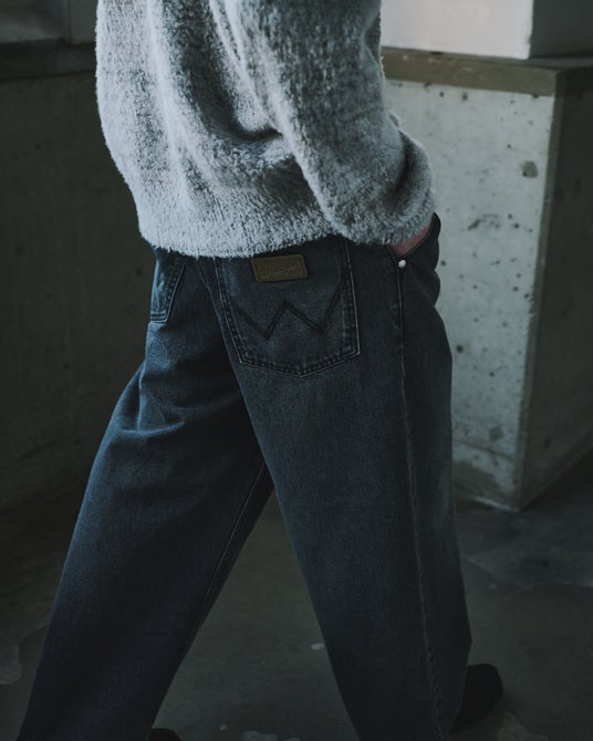 2000年代にWranglerが展開していたルーズフィットジーンズをベースに、現代的なバギーシルエットへとアップデート。14オンスのヘビーウェイトブロークンデニムを使用し、複数の加工を施すことで深みのある色合いと独特の風合いを表現。テーパードを効かせずワイドなアウトラインを保ちながら、ウエストからヒップにかけて立体的に構築することで、前からはすっきりとしたストレートライン、後ろからは腰穿き風のルーズな雰囲気が漂う絶妙なバランスに仕上げています。Price/¥19,800 in tax/size/S,M,L