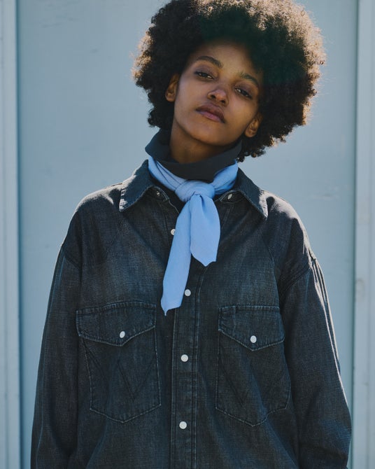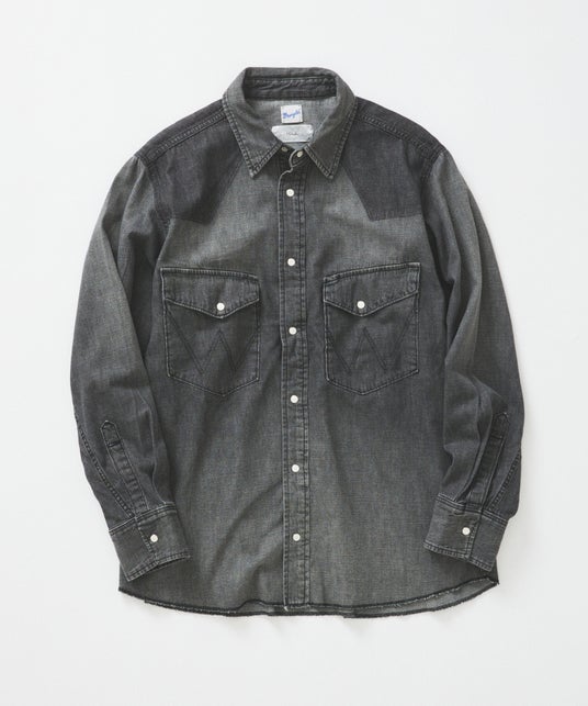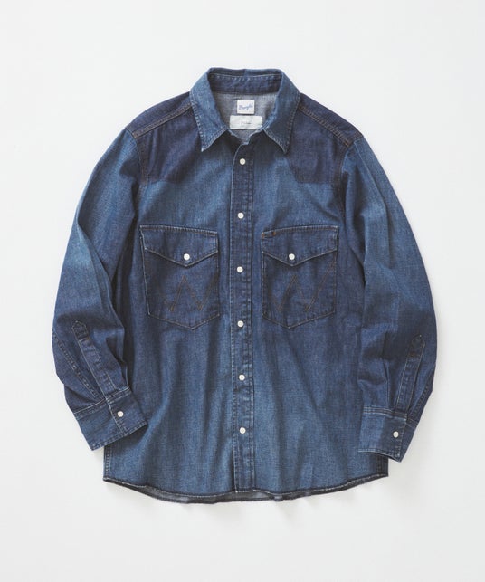 Wranglerが世界に送り出した名作「27MW」をベースにしたデニムシャツ。オリジナルのタイトなフィッティングを見直し、羽織としても活躍するリラックスシルエットに再構築しました。6オンスのブロークンデニムに製品洗い、シェービング、還元脱色を重ねることで、奥行きある表情と柔らかな肌触りを実現。取り外したウェスタンヨークが軽やかな印象を与え、メタルドットボタンやクラシカルな襟型など、27MWらしいディテールも随所に継承しています。