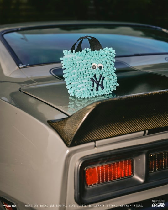 従順なアイデアは、つまらない。遊び心は、常識の向こう側にある。今回のコラボレーションは、「モップ生地に目をつけたら可愛いし、誰もやらない」という、シンプルで自由な着想からスタートしました。THE STANDでも高い人気を誇る「酔い酔いBAG(YYB)」の仕様をベースに、よりユニークで存在感のあるモデルへと進化させています。