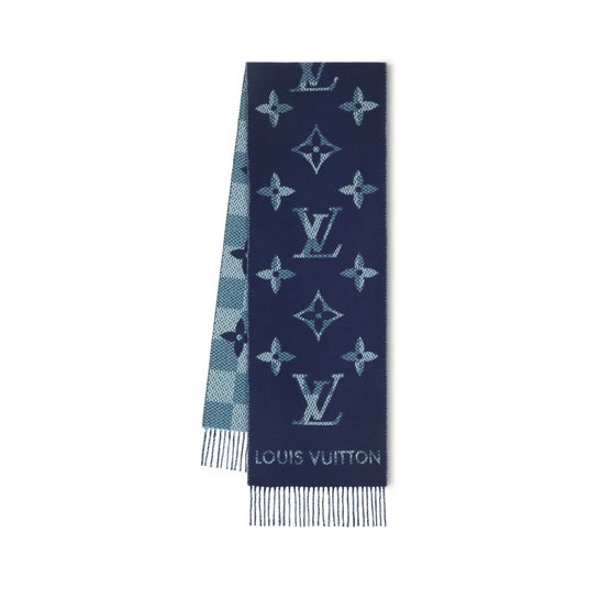 定番のシグネチャーにフレッシュなカラーを取入れ、いきいきと再解釈した「マフラー・オール アバウト モノグラム グラディエント」。グレーの全面に、ブルーのグラデーション効果で表現した大胆なオーバーサイズのモノグラム・エンブレムを配しています。端にはジャカード織りの「LOUIS VUITTON」シグネチャーとツイストフリンジもあしらいました。