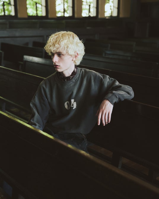 シャリ感ある太番手の裏毛素材を使用。プリントとダメージ加工を加えながら、程よい肉感とドライな着心地を両立。加工内容:中白反応染料による製品染め+特殊脱色+リアルな日焼け風加工+剥がれ感のあるロゴプリント。