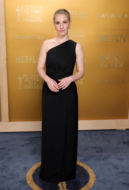 ルース・ブラッドリーは、ディオールのブラックシルクのワンショルダーロングドレスを纏いました。