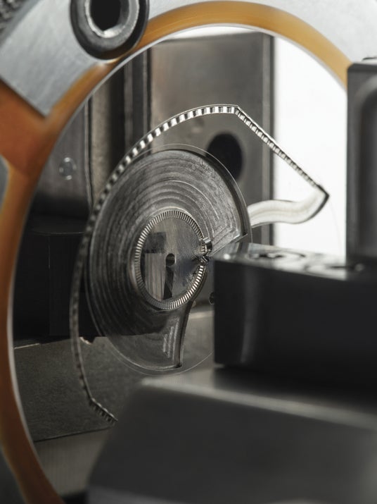 プラチナはその並外れた稀少性に加えて、金よりも加工が困難です。特にプラチナ製部品を機械加工するプロセスでは、特殊な工具を用いて機械工がより手をかける必要があります。その結果、プラチナ製ケースの製作には18Kゴールド製のケースの最大3倍もの時間がかかります。