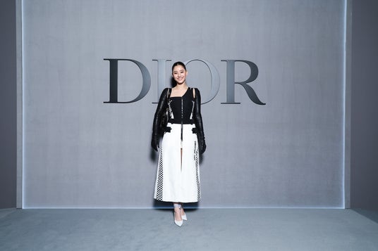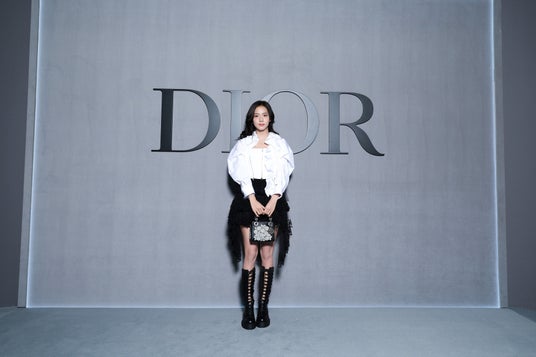 チョウ・イエは、2025年春夏 コレクションからブラックのシルクドレスを纏い、ディオールのアクセサリーを合わせました。