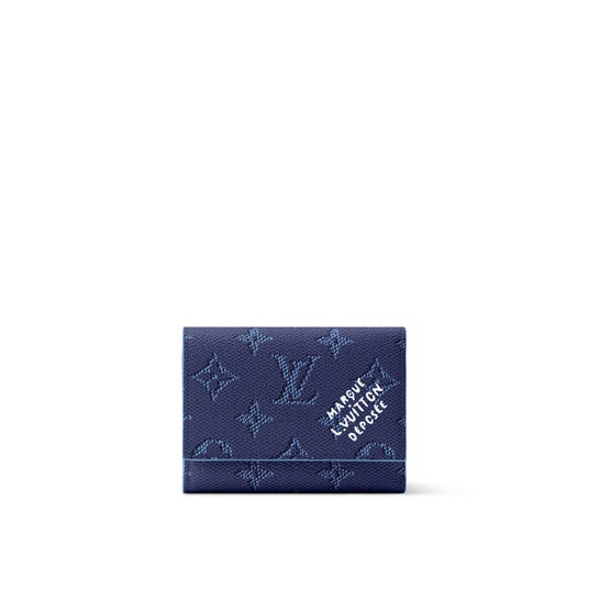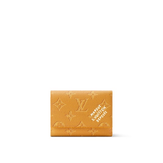 モノグラム・ヘリテージ キャンバスに、カラーのキャンバスとヌメ革のライニングを組み合わせた小ぶりな「ヴィクター・ウォレット」。5つのカードスロットや機能的なファスナー式ポケット、紙幣やレシートを収納できるコンパートメントを備えています。前面にはファレル・ウィリアムスお気に入りの「Marque L. Vuitton Deposee」シグネチャー入り。