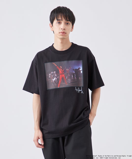 ■001 ブラック ショートフィルム『Thriller』のイメージを大胆にプリントしたフォトTシャツ。存在感抜群の印象的なビジュアルで、着こなしの主役に。