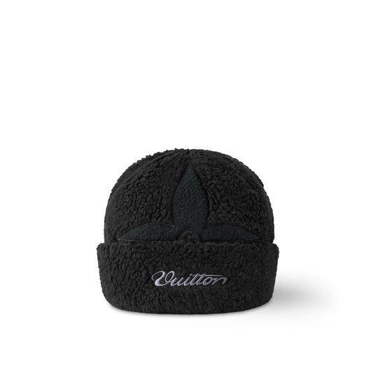 贅沢なマストハブアイテムの「ビーニー・シグネチャー フリース」。ブラックのモノトーンにホワイトの「Vuitton」シグネチャーを刺繍したスタイリッシュな帽子には、冬の寒さに備えた暖かみのあるウール混紡素材を使用しました。アイコニックなモノグラム・フラワーを大胆に再解釈してフリースに埋め込んだデザインが一際目を引きます。