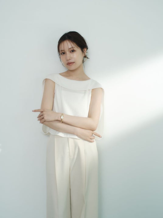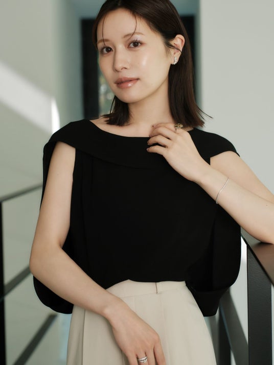首元のジュエリー合わせを楽しめるデザインもポイントです。