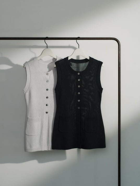 このベストは、いろんなボトムスと合わせることを想像して作りました。