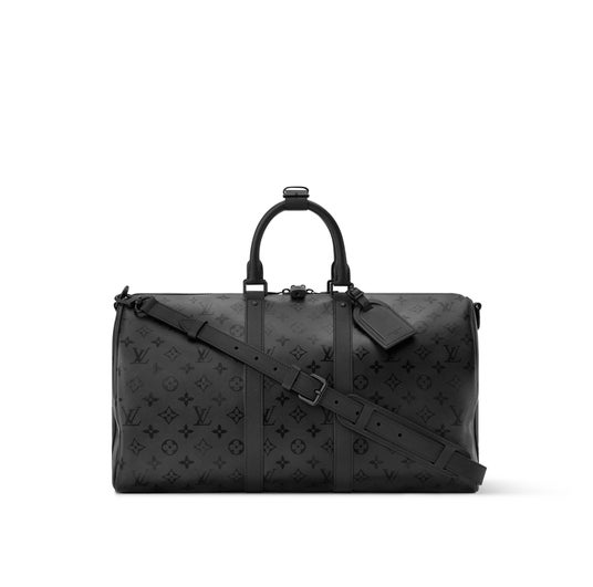 モノグラム・ミッドナイト キャンバスを使用し、洗練された印象を放つ「キーポル・バンドリエール 45」。同系色のマットブラックの金具やほのかにグレイン(しぼ)を施したブラックレザーのトリミング、トップハンドルが、単一色の美しさを引き立てます。取外し&調節可能なストラップと2本のトップハンドルにより、スタイリッシュでありながらもエフォートレスな持ち運びを実現。旅行にも最適な一品です。