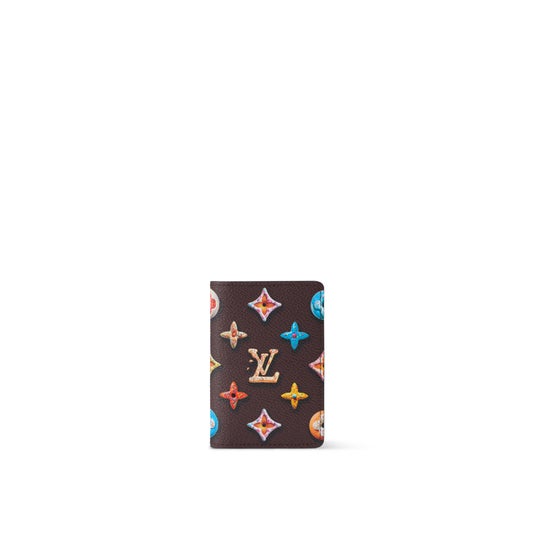 モノグラム・ドーナツ キャンバスを使用した「オーガナイザー・ドゥ ポッシュ」。モノグラム・パターンを小さなドーナツで表現したデザインが印象的なコンパクト財布です。3Dエフェクトを演出するディテールが、定番のスタイルに遊び心溢れるアクセントをプラス。内側には3つのカードスロットと5つのポケットを配し、外側にフラットポケットをあしらうことで実用性を高めています。