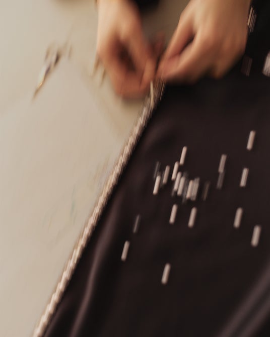 エスティ・ハイムが着用したトップスは約70時間、スカートは約50時間以上をかけて制作されました。