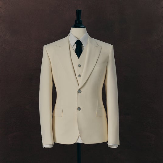 また、パフォーマンスを行った際に着用したホワイトのジャケットは、柔らかなウールを用い、職人技による仕立てで制作しており、マザー・オブ・パール ボタンにカスタムのシグネチャーラベルのディテールを備え、裏地にはシルクを全面に使用しています。