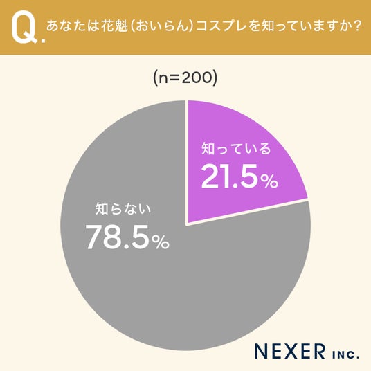 その結果「知っている」と回答したのは21.5%でした。78.5%の女性が花魁コスプレを知らないという結果となり、現時点では一般的な認知度はまだ高くないことがわかります。
