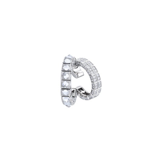 また、メゾンのハイジュエリー・コレクションより、ホワイトゴールドとダイヤモンドをあしらったリング「セデュクション」と、ホワイトゴールドとダイヤモンドのイヤリング「ヴィクトワール」も着用しました。