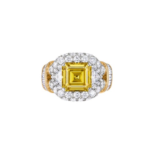 また、メゾンのハイジュエリー・コレクションより、プラチナ、イエローゴールド、ダイヤモンドをあしらったリング「オプティミズム」も着用しました。