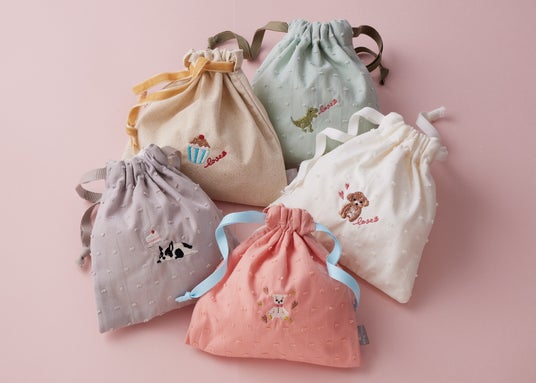 多くのママに愛され続けている、ラッピングとして開発されたお子様のお荷物入れからママの小物入れにも大活躍するオリジナル刺繍入り巾着“ドローイングバッグ”。今回はバレンタインにあわせて、兵庫県芦屋市に小さな工房を持つ、お子様も食べやすい素材にこだわった焼き菓子屋「emif」とコラボレーションしました。