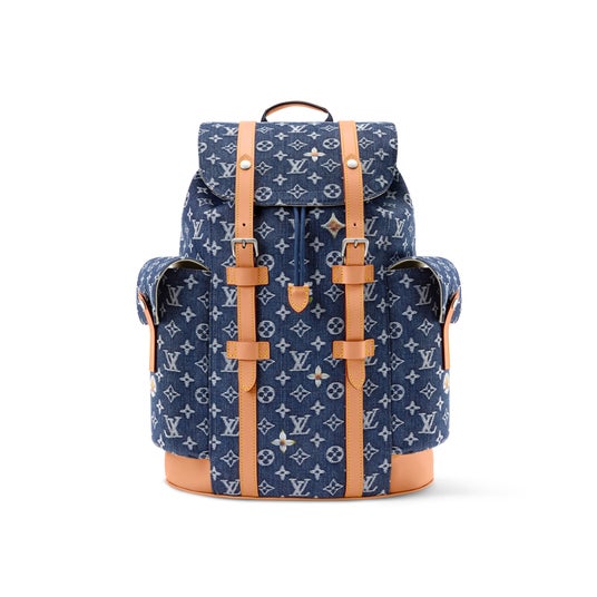 ホワイトとインディゴのツートーンカラーでモノグラム・モチーフをデニムに直接織り込んだ、モノグラム・フラワー デニムの力強いシルエットが魅力の「クリストファー MM」。レザーのトリミングと2つのサイドポケットがその大胆なラインを一層引き立て、エクリュカラーのテキスタイルライニングがアクセントを添えます。