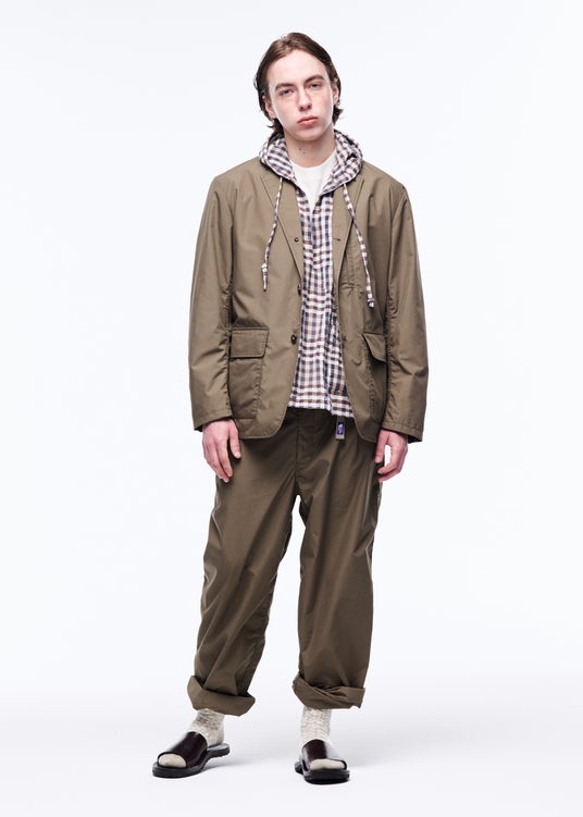 本カプセルコレクションを象徴するミッドウェイト65/35ベイヘッドクロスを使用したバークレージャケット。知性とラフさを併せ持つ、実用的で肩の力の抜けた空気感に。多機能ポケットを備えつつ、カラーはトラッドな匂いを佇ませながらも都会的な印象に仕上げた。