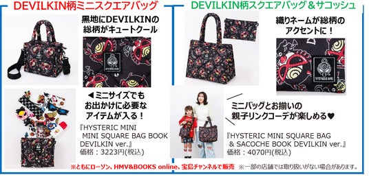 バッグ、サコッシュ付きトート)を書店で、同じくブランドキャラの「DEVILKIN」の総柄2種(ミニバッグ、サコッシュ付きトート)をローソン、HMV&BOOKS onlineで販売します。さらに、
