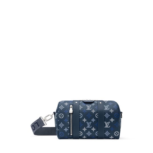 モノグラム・シャドウ レザーに同色のレザートリミングを組み合わせ、エイジング加工のシルバーカラーの金具をあしらった「シティ・キーポル」。取外し&長さ調節可能なストラップを備え、ショルダーバッグやクロスボディキャリーとしても楽しめるアイテム。同系色のテキスタイルライニングを施し、前面には必需品を素早く取出せるファスナー式ポケット付き。