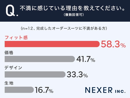 一方、完成したオーダースーツに不満があると回答した方に、不満に感じている理由を聞いてみました。