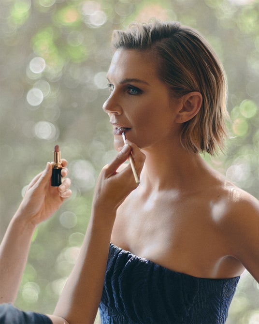 レイ・シーホーンは、ほのかなロージーベージュの「LV ルージュ 105 ヌード ネセセール」で唇を繊細に引き立てました。