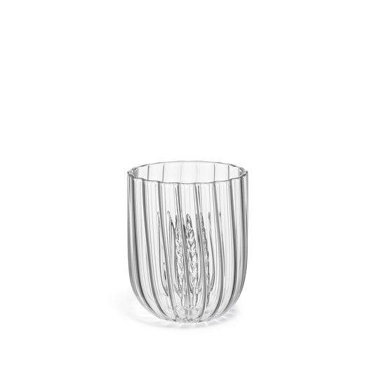 チャーミングなアヒルのシルエットのジャグは、遊び心のあるサプライズとして、この上なく優美なセットを完成させます。手作業でクラフトされたこれらのクリエイションにはイタリアの吹きガラス技法が採用されており、熟練のガラス職人によるサヴォワールフェールが表現されています。洗練されたベースの上に配置された花瓶のボディは、丸みを帯びたカーブを描いています。これは、1947年に発表されたフレグランス「ミス ディオール」のオリジナルのアンフォラボトルを思い起こさせ、メゾンのさまざまなヘリテージにオマージュを捧げています。究極のアクセントとして施された繊細なストライプ模様が、この羨望のアイテムにエレガントなタッチを加えています。