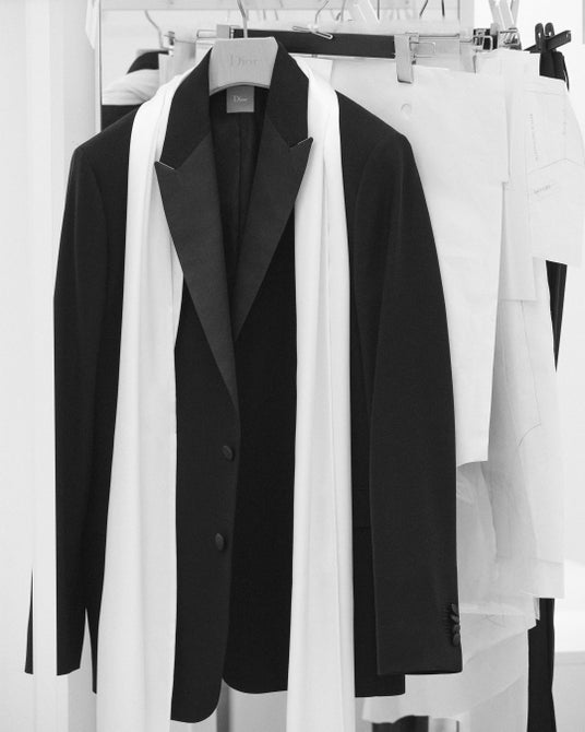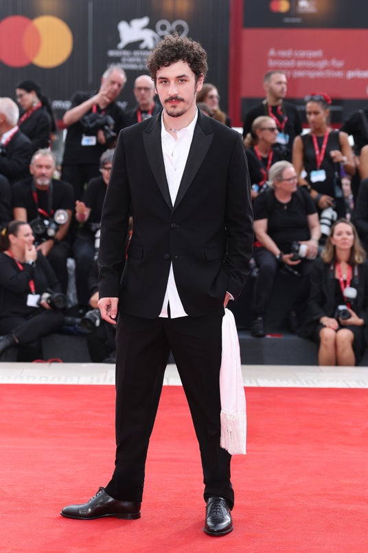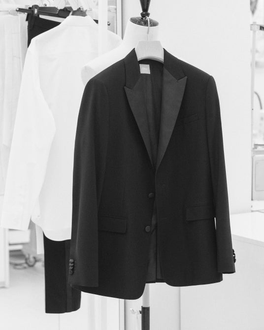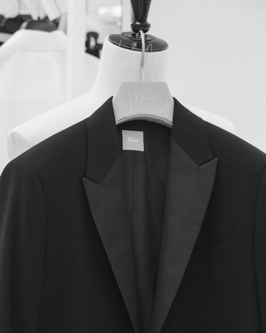 ウィル・プライスは、ブラックのウールシングルブレストピークドラペル イブニングジャケットと、同じくブラックのパンツ、ホワイトのコットンシャツ、ホワイトのシルクスカーフ、ブラックレザーのダービーシューズを着用し、ディオール ファイン ジュエリーを合わせたコーディネートを披露しました。
