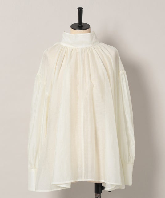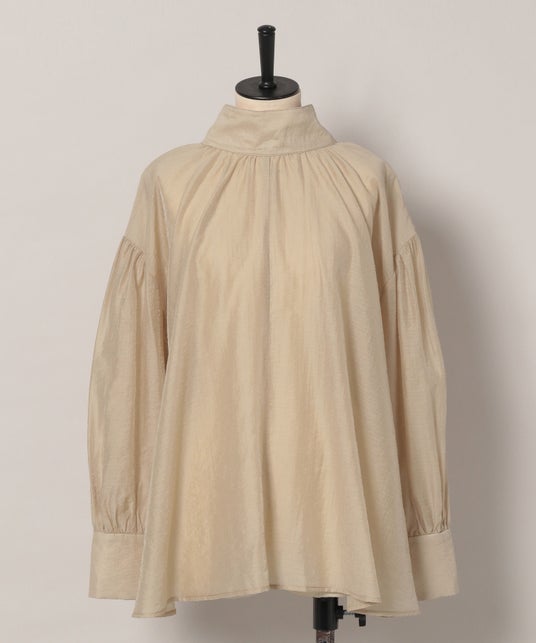 ベストなどとレイヤードしやすいようにスタンドカラーで仕立てました。