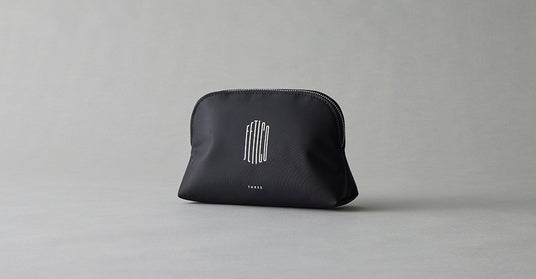 概要: ショー会場の芳香演出や、コラボレーション製品を使用したモデルのメイクアップなどのランウェイショーを軸とした「THREE」とのコラボレーションの一環として、舟山氏が制作した「FETICO」と「THREE」の「by R」限定コラボレーションメイクアップポーチを数量限定でプレゼントします。光沢感のあるナイロンツイル生地のクラシックなシェル型ポーチに、両ブランドのロゴを施した、両ブランドのユーザーにフィットする性別を問わないデザインです。