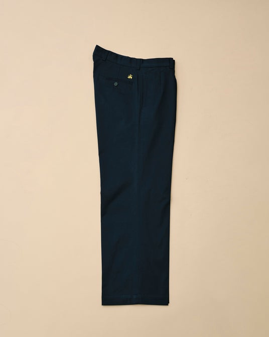 昨年瞬く間に完売した別注モデルが待望の再登場。ブランドのアイコンである「アドバンテージチノ」のツータックモデルをベースに、現代的なシルエットへアップデートしました。股下は前作のアンクル丈から1インチ(約2.5cm)延長し、裾上げをせずともバランスよく穿けるフルレングス仕様に。スニーカーから革靴まで合わせやすい万能なバランスに仕上げています。ゆったりとした「PLTフィット」を採用し、2本のプリーツが腰回りに立体感を生みつつ、裾に向かって緩やかにテーパードするシルエットでリラックス感と品の良さを両立。ヒップポケット上部にはブランドアイコンである「GF(ゴールデン フリース)」ロゴを刺繍しました。