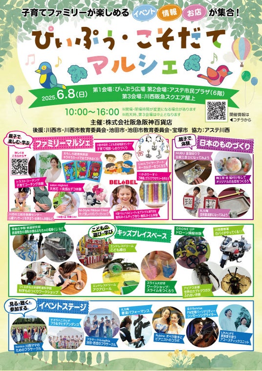 エイチ・ツー・オー リテイリング(H2O)グループの株式会社阪急阪神百貨店(本社:大阪市北区、代表取締役社長:山口俊比古、以下「阪急阪神百貨店」)は、兵庫県川西市をはじめとする行政の後援を受け、2025年6月8日に川西市の川西阪急スクエアおよびアステ川西において、イベント「ぴぃぷぅ・こそだてマルシェ」を初開催します。 川西・池田・宝塚エリアにお住まいの子育てファミリーに向けて、子育てに役立つ情報や親子で お楽しみいただけるワークショップなど約35のコンテンツが集まります。