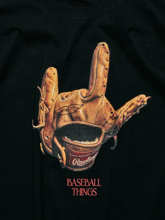 「BASEBALL THINGS」直訳で「野球のこと」。グラブのハンドサインで“LOVE”を表現し、野球への想いをユーモラスに落とし込んだグラフィック。
