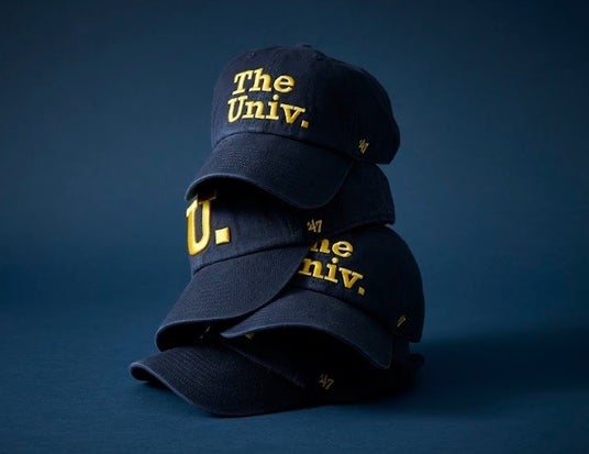 アメリカ発「'47」とのコラボレーションで生まれた、クラシックな6パネルキャップ。架空の大学「The University.」を象徴するロゴを、ネイビー×イエローの刺繍で大胆に。