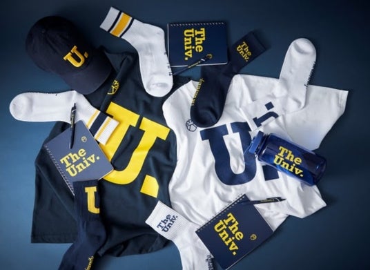 「The University」Tシャツ 6,820円・キャップ 6,600円・ソックス 2,970円・ノート 660円・ペン 440円、ボトル 3,850円