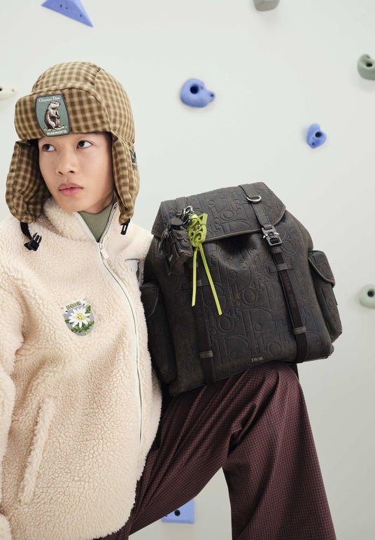 バッグやスモールレザーグッズは、遊び心溢れる「ディオール マウンテン」パッチにより彩られます。これらのエンブレムは、ジュエリー、チャプカ、キャップにもあしらわれています。